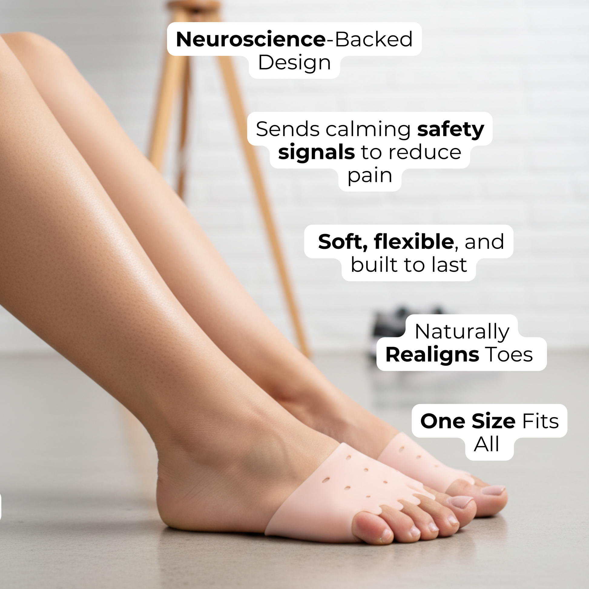 VANE was created with leading foot specialists to tackle a major cause of chronic foot pain: toe misalignment. Once only solved with surgery, it now has a gentle, non-invasive answer. Made from medical-grade silicone, VANE realigns your toes, eases pressure, and relieves pain, helping you move freely again.