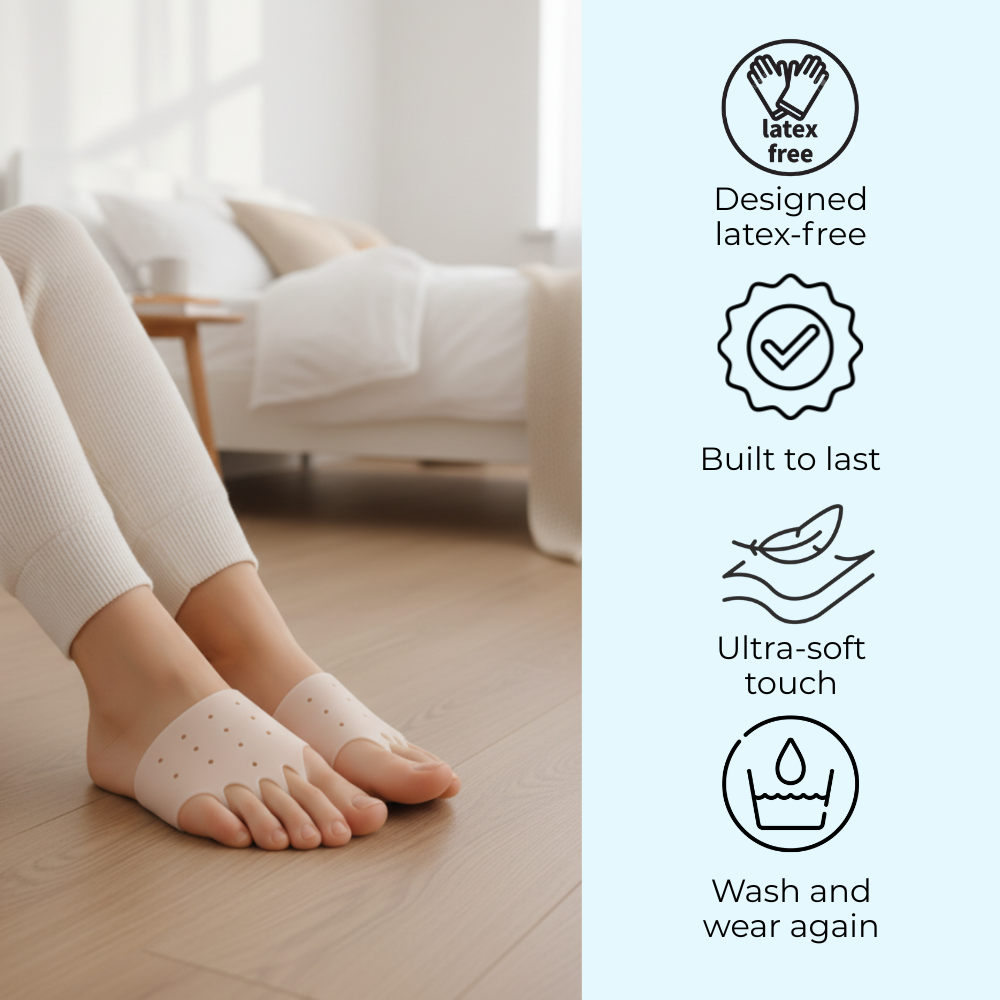 The soft, medical-grade silicone is gentle on your skin and built to handle repeated wear without losing shape or comfort. In fact, using it regularly can lead to better alignment, reduced tension, and long-term foot relief.